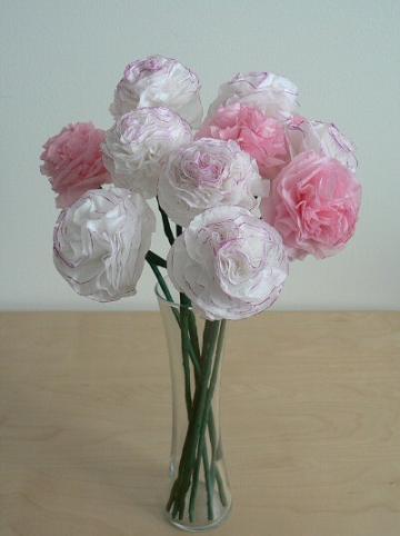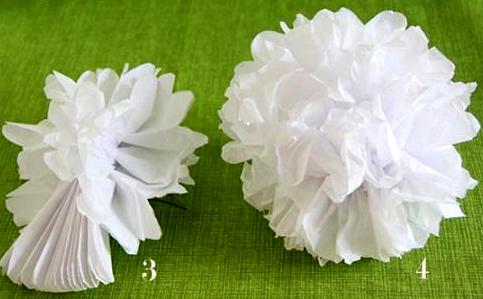 Make some more flowers and arrange it as a bunch. You may try it with different colors. If you increase the number of tissue layers, you can easily make Carnesium flowers and pom poms. Here are some beautiful tissue paper flowers.